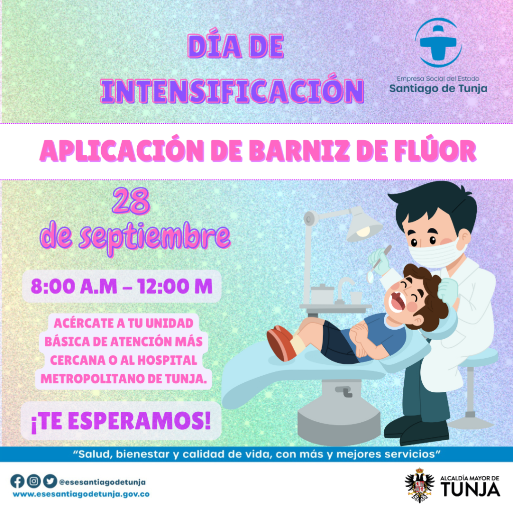 Llega a nuestra E.S.E una nueva jornada de intensificación en aplicación de barniz flúor, acércate este sábado a tu UBA más cercana y ten un sonrisa sana y saludable.